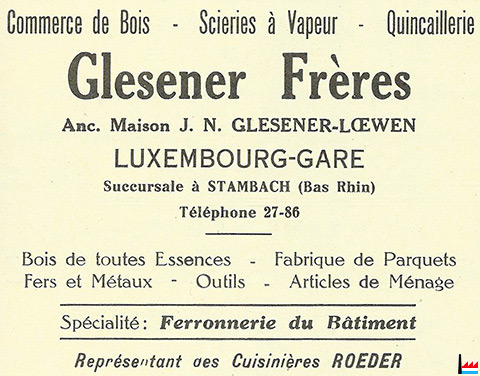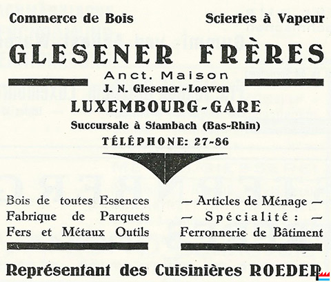 | 1931 | Société en nom collectif « Glesener frères » ancienne maison J. N. Glesener - Loeven», établie à Luxembourg-gare |