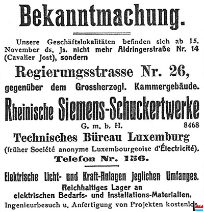 Halske & Schuckert-Werke 29 Avenue Porte Neuve, Luxemburg |