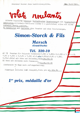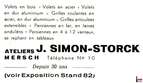 | 1948/49 | ![]() Simon - Storck, volets roulants, jalousies - 1948 (Collection industrie.lu) 95 rue Nicolas Welter, Mersch |
