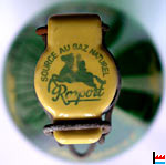 Flasche des neuen Produktes müssen noch bestimmt werden. Zurückbehalten wird eine dunkelgrüne Flasche im Art Deco Stil die in den Vereinigten Staaten patentiert wurde. Diese Flasche kommt so nach Europa. Das Logo wird durch den Reiter vervollständigt. Dieser erinnert an den alten Dorfnamen von Rosport : Roßfurt (vor dem Bau der Sauerbrücke konnte der Fluß nur durch eine Furt an einer seichten Stelle durchquert werden). Im Oktober werden die ersten 20cl Flaschen abgefüllt. |