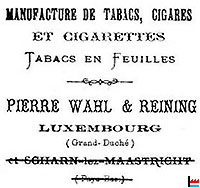 | 1889 | Die Firma Wahl und Reining, Cigarettenfabrikanten zu Luxemburg, erhält Ehrenmeldung, für ihre Produkte, auf der Pariser Weltausstellung (LW: 1.10.1889) |