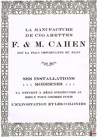 La Manufacture de cigarettes F. & M. Cahen est la plus importante du pays - 1922 (Publicité -