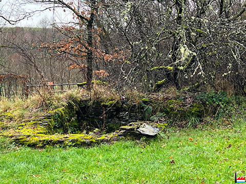 | Seit den Kriegszerstörungen 1944/45 findet man nur noch von Pflanzen überwucherte Ruinen, die einem Einwohner aus Villers-la-Bonne-Eau gehören. | |