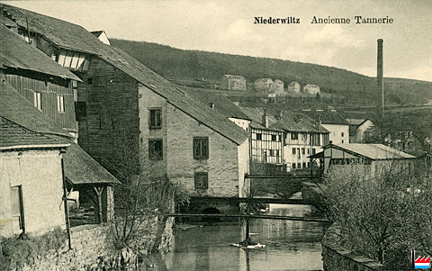A l'avant-plan la Tannerie Faber à Niederwiltz,