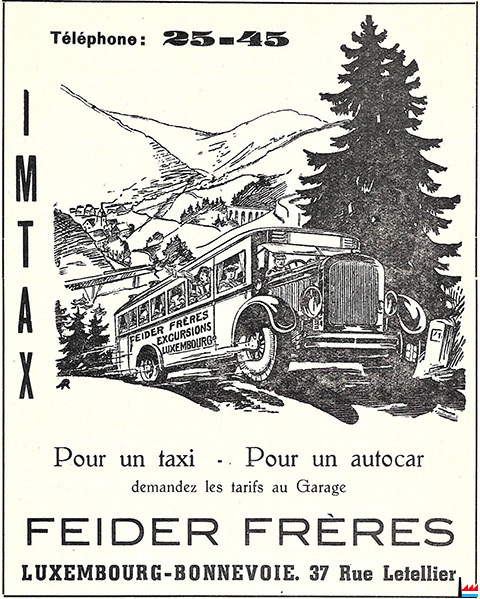 1935 - IMTAX Feider Frères - Excursions - 37, rue Letellier Luxembourg-Bonnevoie (in: Festbrochüre Bonneweg und die Bonneweger - 16. Juni 1935)