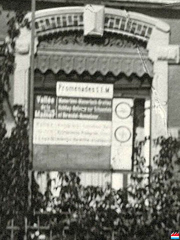 ![]() Publicité pour Promenades S.I.M. - Vallée de la Mamer - Maison N. Kies-Hamilius, Mersch (Extrait de la photo originale pour carte postale: Manufacture de Cartes-Vues, Edm. Hansen, Mersch; collection: industrie.lu) |