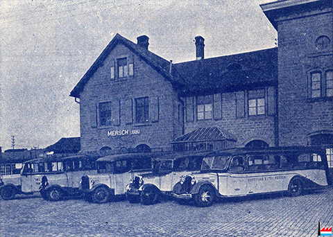 De Joseph Frisch hat 4 Bouwen an e Meedchen… Hien huet 1927 den éischten Bus en Minerva mat enger MAES Carosserie an Dingscht gesaat an as op den Zuch op Arel an op Miersch gefuer…