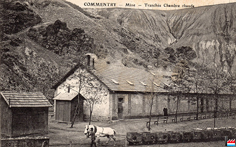 Commentry - Mine - Tranchée Chambre chaude - cheval avec wagonnets - vers 1905