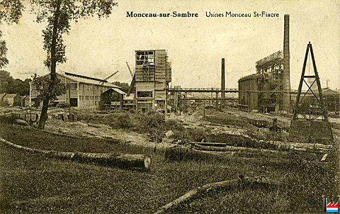 Usine Monceau St.Fiacre, Monceau-sur-Sambre - vers 1913 (Carte postale: Edit. J. Burton, Impr. Papet. rue du Commerce 2 Monceau-sur-Sambre; Collection: industrie.lu)
