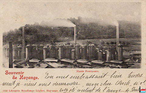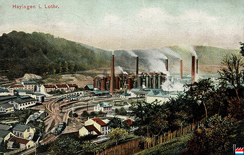 Hüttenwerk Hayingen - um 1903 (Carte postale: Verlag: W. Albrecht Buchhandlung, Hayingen in Lothringen;