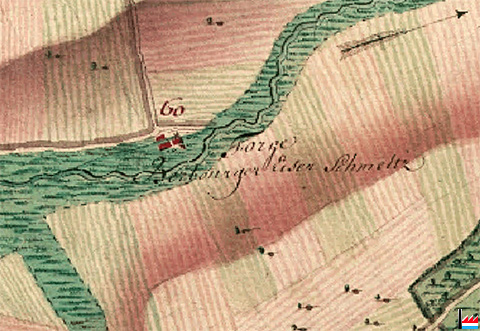 ![]() Forge - Berbourger Eisenschmeltz - 1777 (Carte de Ferraris - Bibliothèque royale de Belgique - 2010) |