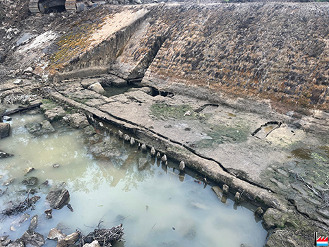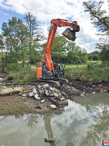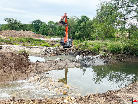 Demolitioun vum aale Wier vun der Berbuerger Schmelz bei der Cité Syrdall (Photo: 3.6.2022 Claude Strotz)