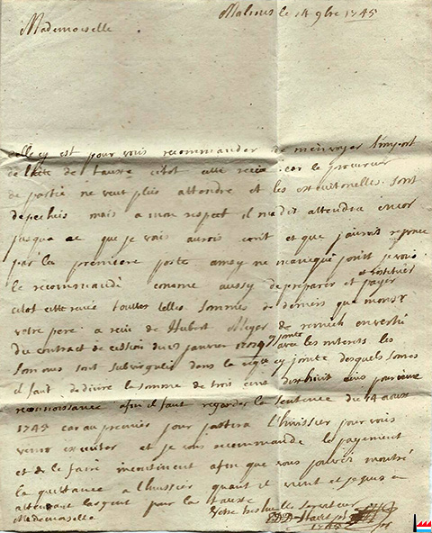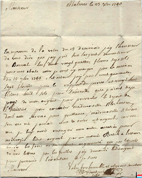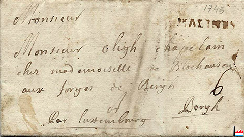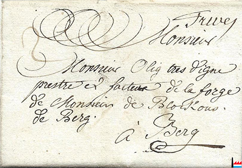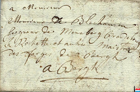 | 16.9.1716 | ![]() Mr Blochausen, maître de Forges à Berg - lettre de Malines (Collection: Jean Diederich) |