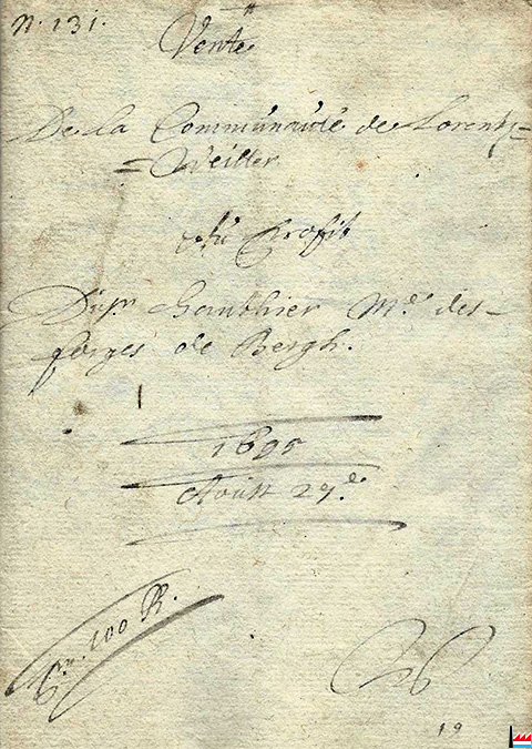 | 29.8.1695 | ![]() Vente de la Communauté de Lorentzweiler au profit de Gauthier, maître de forges de Berg (Collection: Jean Diederich) |