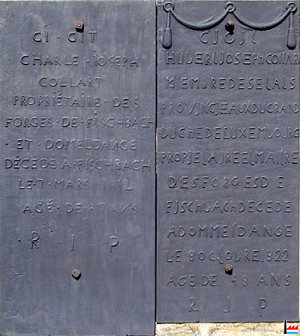Plaques funéraires en fonte à l'église de Fischbach (Photo: 13.5.2003 jmo)