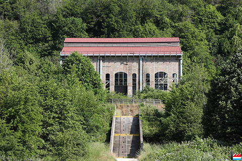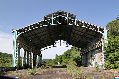 Halle des machines raccourcie, située derrière les hauts-fourneaux