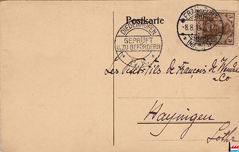 | <=1907 | Walther Karl, Oberingenieur, Les Petits fils de Fois de Wendel & Co., Hayingen in Lothringen, Bahnhofstraße | ||