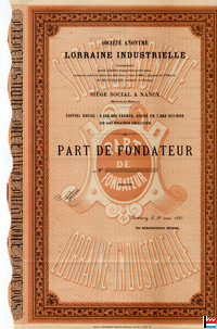 | 1881 | Victor Steinbach, maître de forges à Jarville, actionnaire-fondateur de la Société Lorraine Industrielle (10 actions) | ||