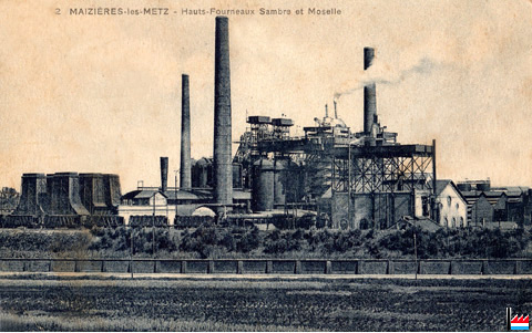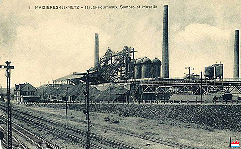 Ancien texte: A gauche, l'ancienne usine de Sambre et Moselle, à droite l'Usine de Maizières-les-Metz (Moselhütte) (Collection: industrie.lu)