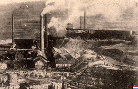 | Destruction de l'usine pendant la première guerre mondiale | |||