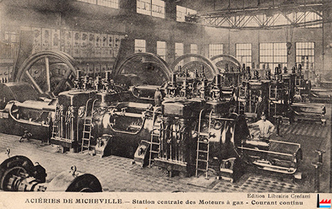 Aciéries de Micheville - Station centrale des Moteurs à gaz - Courant continu - vers 1927 (Carte postale; Edition Librairie Credazzi; Collection: industrie.lu)