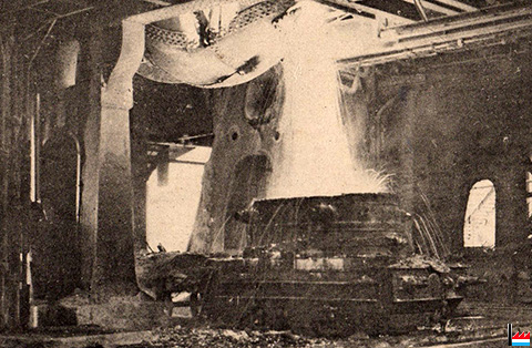 Villerupt - Aciéries de Micheville: Démoulage des pains de scories