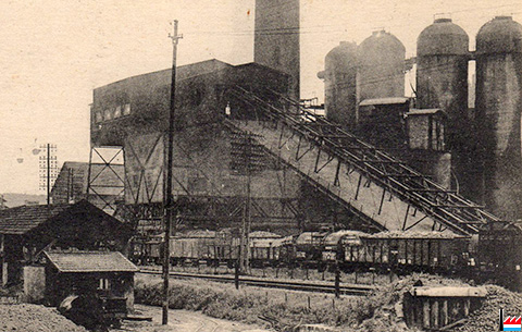 Cokerie de Blénod-les-Pont-à-Mousson: Vue d'ensemble de la batterie et de la Tour à charbon (Carte