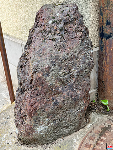 | Am Fundament vum "Priedegtstull" am aale Mierscher Park waren Schlacken (aus der Rollenger Schmelz?) verschafft (jmo) | |||