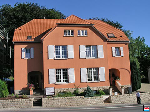 Villa Collart, Steinfort - erbaut 1904 - Wohnhaus des Hüttendirektors (Photo: 1.10.2012 jmo / Extrait de la carte postale: Manufacture de cartes P. Houstraas, Luxembourg, Rue des Augustins; collection: industrie.lu)