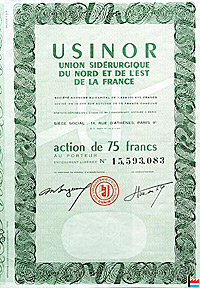 USINOR - Union Sidérurgique du Nord de la France - Action de 75 nouveaux francs (Collection: industrie.lu)