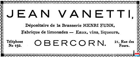 | Jean Vanetti Dépositaire de la Brasserie Henri Funck Fabrique de limonades - Eaux, vins, liqueurs |