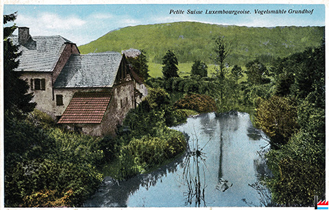 Vugelsmillen - Vogelsmühle, Grundhof - Berdorf (Extrait de la Carte postale: Kunstverlag P.C. Schoren, Luxemburg-Bahnhof Serie Müllertal 30; Collection: industrie.lu)