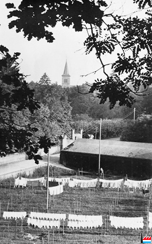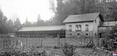 Wäschbuer Baschelt - Waschbrunnen - Lavoir Baschleiden - <=1931 (Extrait carte postale: Manufacture de cartes vues E. Hansen, Mersch; Collection: industrie.lu)