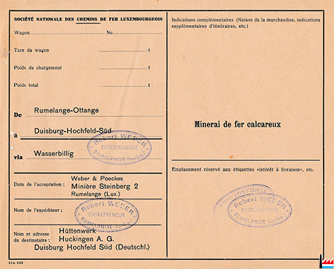 | 1.4.1943 | Zusammenschluss der Erzgruben von Robert Weber, Rümelingen, in die Gewerkschaft Lützelburg durch die Verordnung des Chefs der Zivilverwaltung |