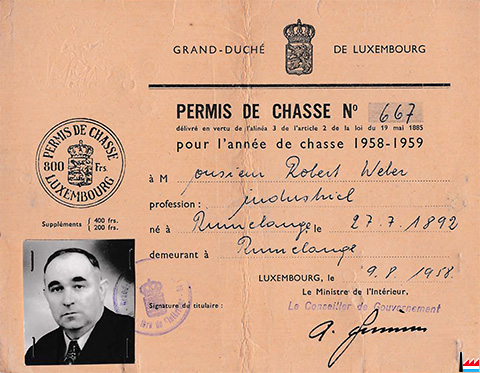 Permis de chasse N° 667 - 1958-59 de Robert Weber, Rumelange (Scan: Yves Kemp)