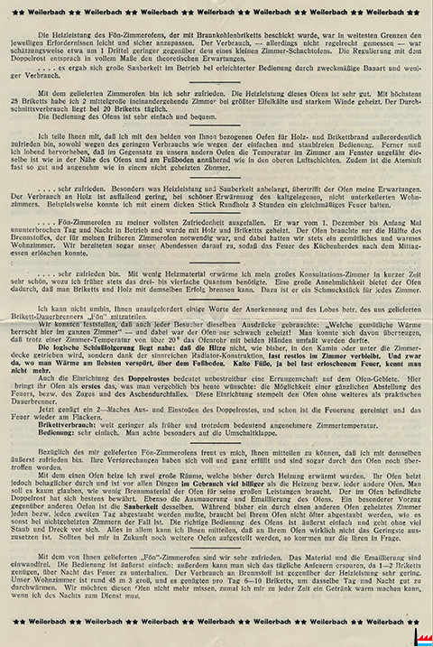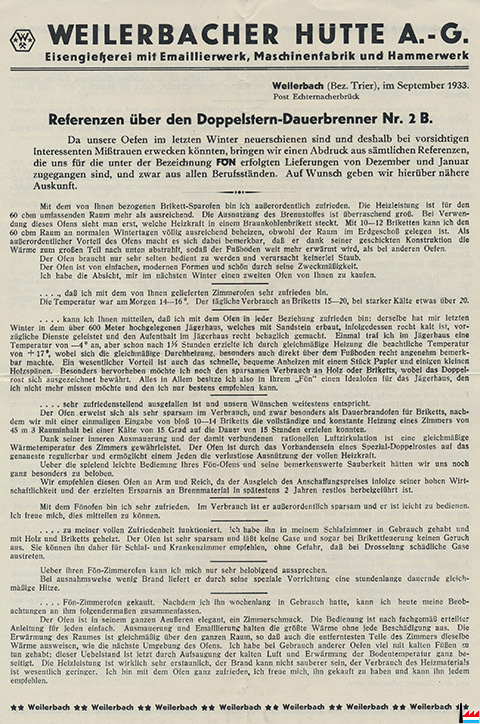 | <=3.8.1935 | ![]() Weilerbacher Hütte A. G. - Eisengieβerei, Dampfhammerwerk, Maschinenfabrik Weilerbach |