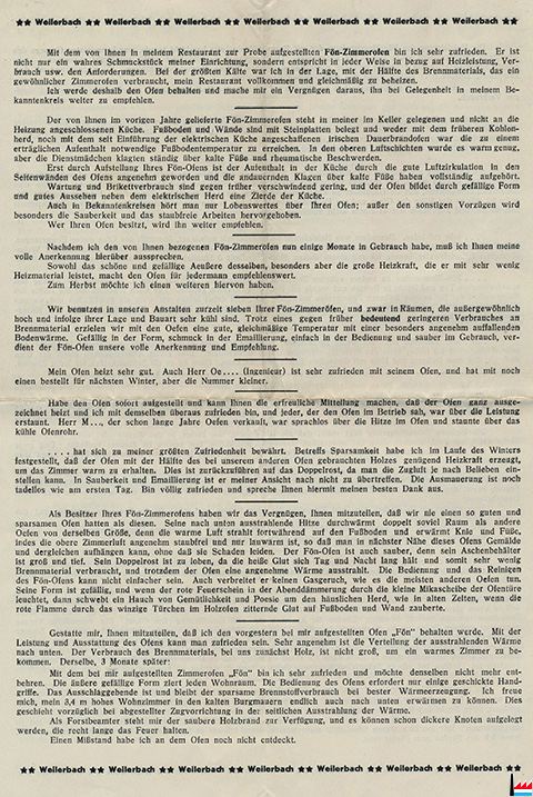 Weilerbacher Kesselofen Marke Weilerbach mit Doppelstern ** Gebrauchsmusterschutz: D.R.G.M. N° 324 013 maschine Fabrikation mit patentierten Formmaschine Sparbrenner - Schnellkocher für Steinkohlenfeuerung sowie für Holzkohlenfeuerung |