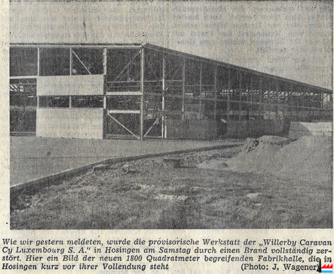 ![]() Die neue Fabrikhalle der WILLERBY Caravan Cy, Hosingen (LW: 6.10.1964 p.10; Scan: Fernand Toussaint) |