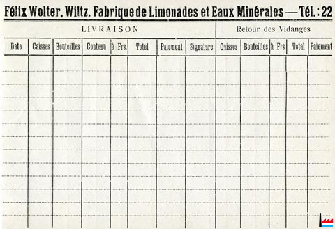 | 15.2.1952 | ![]() Félix Wolter, Wiltz - Vins et limonades - facture du 15.2.1952 (Collection: industrie.lu) pour: Café Schinker, Consthum Signée par: Thérèse Wolter |
